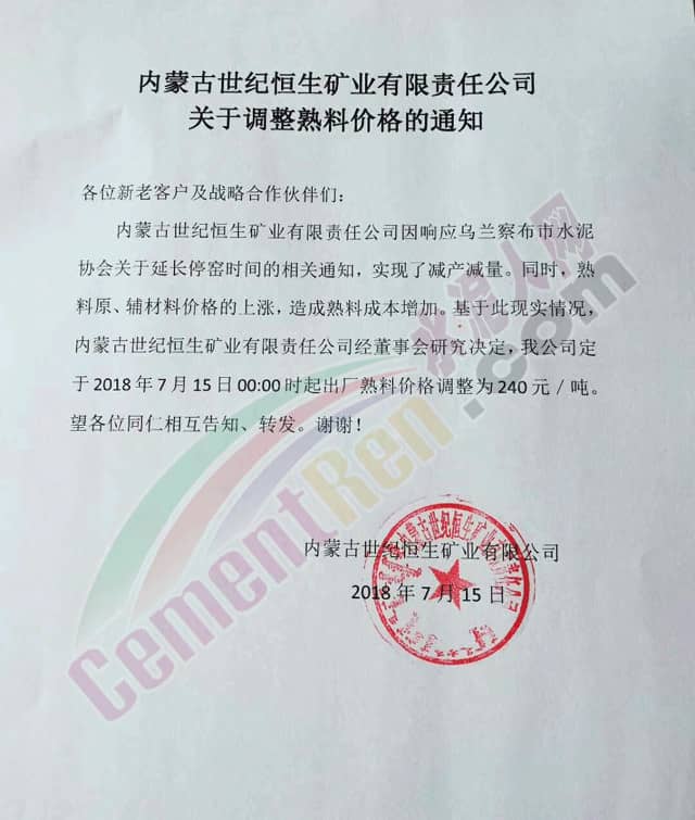 據(jù)水泥人網(wǎng)了解,烏蘭察布市區(qū)域內(nèi)中聯(lián)水泥、冀東水泥等集團(tuán)企業(yè)熟料不做對(duì)外銷售僅供應(yīng)內(nèi)部粉磨站。內(nèi)蒙世紀(jì)恒生礦業(yè)有限公司本次上調(diào)熟料價(jià)格或?qū)?dòng)整個(gè)烏蘭察布市熟料市場(chǎng)價(jià)格上揚(yáng)。