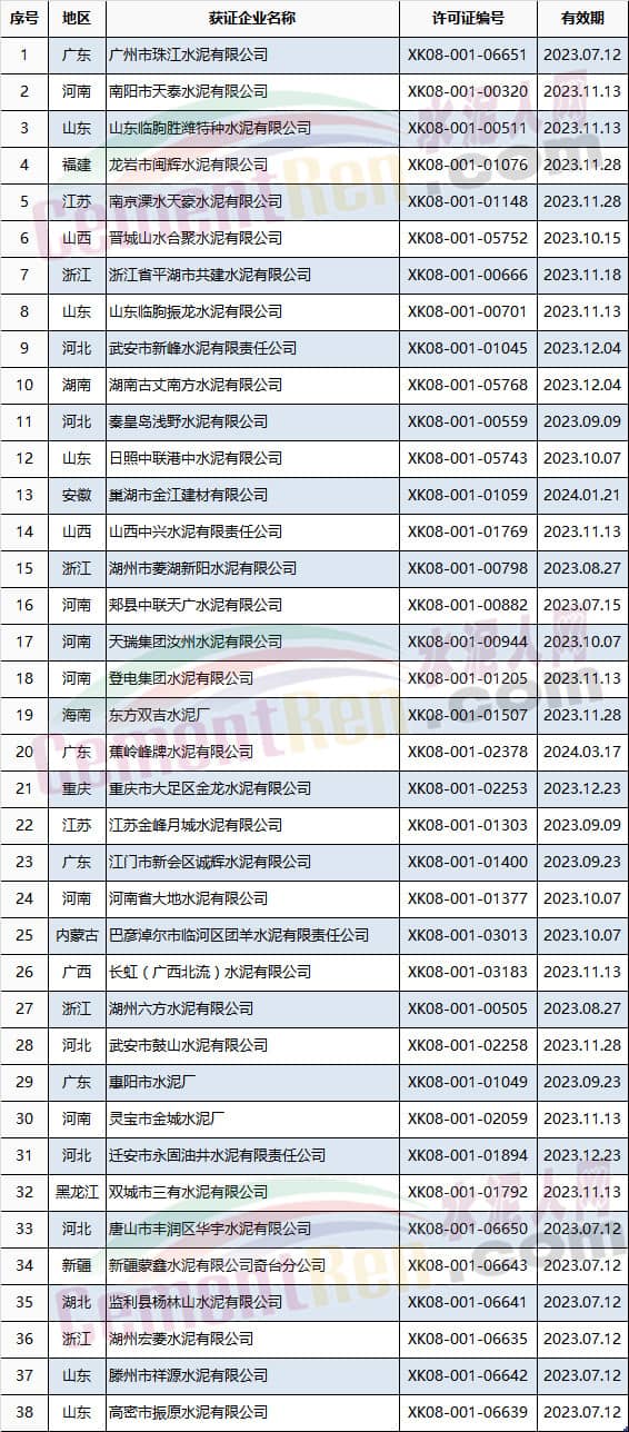 【水泥人網(wǎng)】7月13日質(zhì)檢總局發(fā)放了七月份第一批水泥企業(yè)生產(chǎn)許可證。涉及68家企業(yè)。其中,新發(fā)證書(shū)5家企業(yè);證書(shū)到期延續(xù)38家企業(yè);涉及許可范圍變更、企業(yè)名稱變更項(xiàng)目共22家企業(yè),其他3家企業(yè)。具體情況如下: