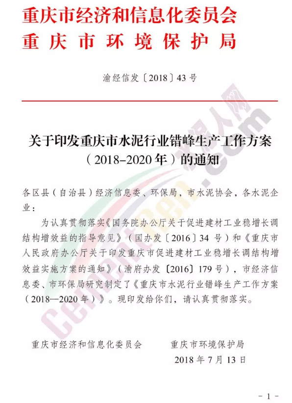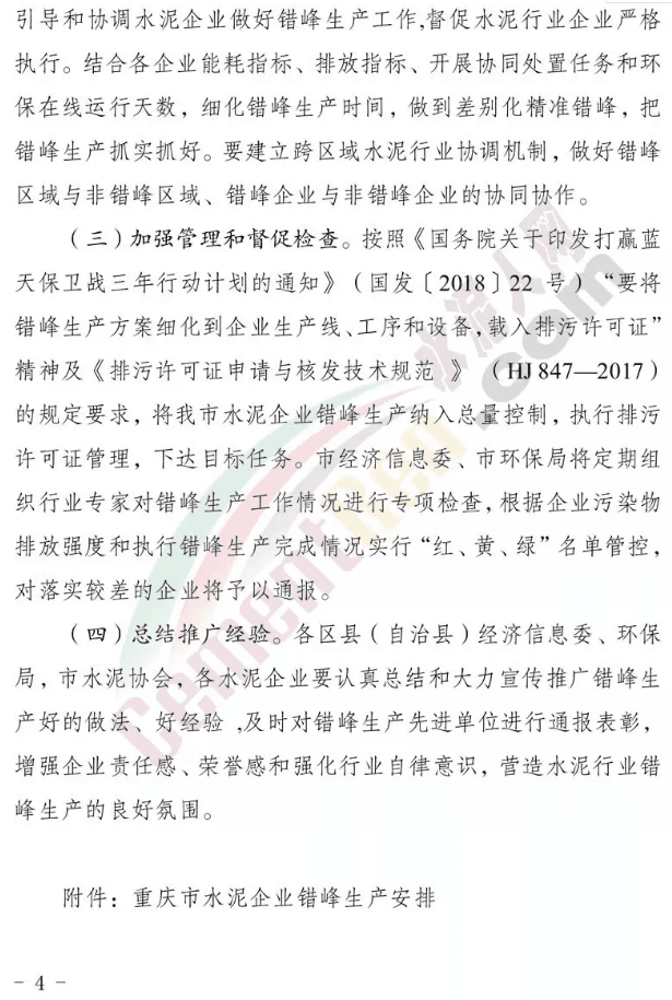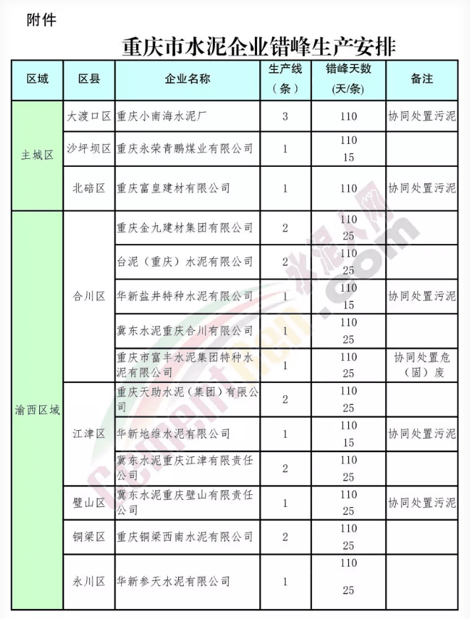 主城區(qū)和渝西區(qū)域內企業(yè)(除綦江區(qū)、南川區(qū)、萬盛經開區(qū))每年錯峰停窯總天數110天,其中:1-2月停窯20天,6-8月停窯35天,11-12月停窯20天,其他時段錯峰停窯35天;