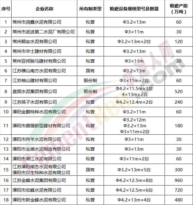 常州市水泥粉磨站企業(yè)名單