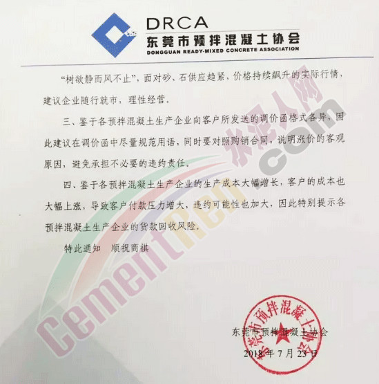 東莞市預(yù)拌混凝土協(xié)會發(fā)布關(guān)于落實(shí)防揚(yáng)塵、防斷供的緊急通知,通知稱環(huán)保高壓態(tài)勢日趨嚴(yán)格,7月23日協(xié)會接到市住建局緊急通知,東莞市攪拌站已被東莞環(huán)保組“大氣辦”、東莞市安監(jiān)站列為常態(tài)監(jiān)控對象,重點(diǎn)治理攪拌站“揚(yáng)塵”現(xiàn)象。
