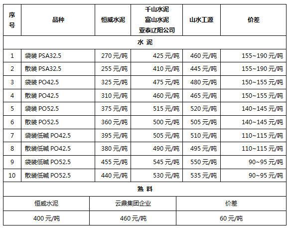 對比這家企業(yè)四月初發(fā)布的價格通知,部分標號水泥產(chǎn)品價格有小幅上調(diào)。相關(guān)分析人士稱,近期,遼中地區(qū)價格較平穩(wěn),波動不大,恒威水泥上調(diào)水泥價格或為平衡供需。