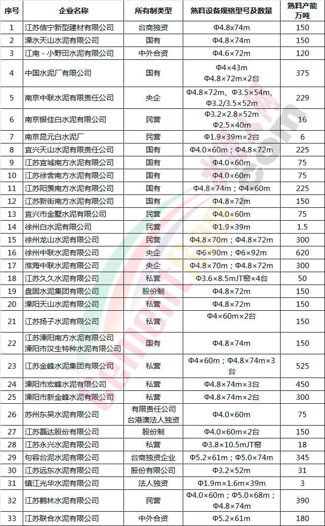 江蘇省水泥企業(yè)名單