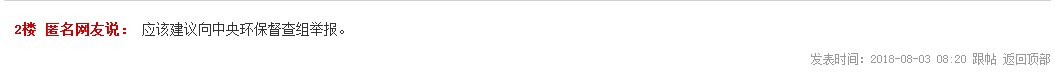 另一位匿名網(wǎng)友建議向中央環(huán)保督查組舉報。