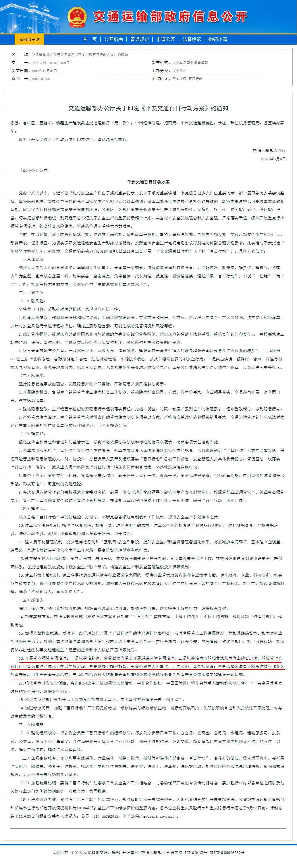 為切實(shí)保障交通運(yùn)輸安全生產(chǎn)形勢(shì)持續(xù)穩(wěn)定,交通運(yùn)輸部辦公廳日前發(fā)布了《平安交通百日行動(dòng)方案》(下稱《方案》),決定自2018年8月6日至11月15日開展“平安交通百日行動(dòng)”(下稱“百日行動(dòng)”)。