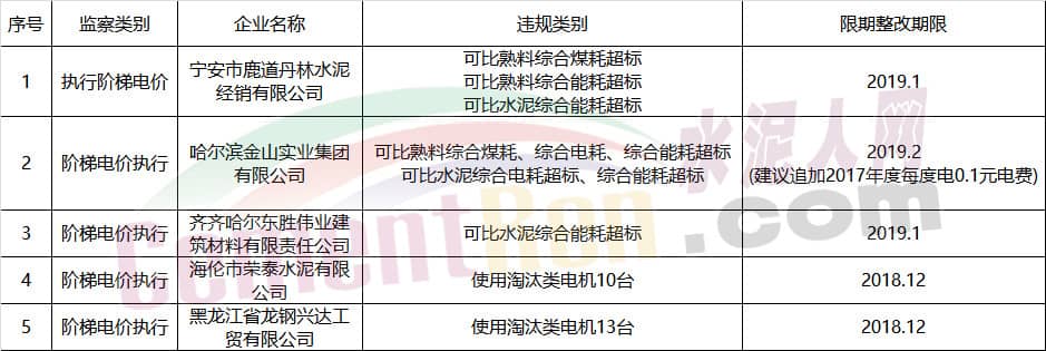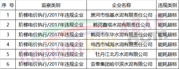 【水泥人網(wǎng)】昨日(8月9日)黑龍江工信委發(fā)布公示文件稱:根據(jù)《工業(yè)和信息化部關(guān)于印發(fā)〈2018年工業(yè)節(jié)能監(jiān)察重點工作計劃〉的通知》(工信部節(jié)函〔2018〕73號)、《國家發(fā)改委 工信部關(guān)于水泥企業(yè)用電實行階梯電價政策有關(guān)問題的通知》(發(fā)改價格〔2016〕75號)部署、要求及相關(guān)規(guī)定,將第一階段監(jiān)察違規(guī)企業(yè)未整改情況向社會公示,并請各界監(jiān)督。如有異議,可在公示期內(nèi)實名反映。