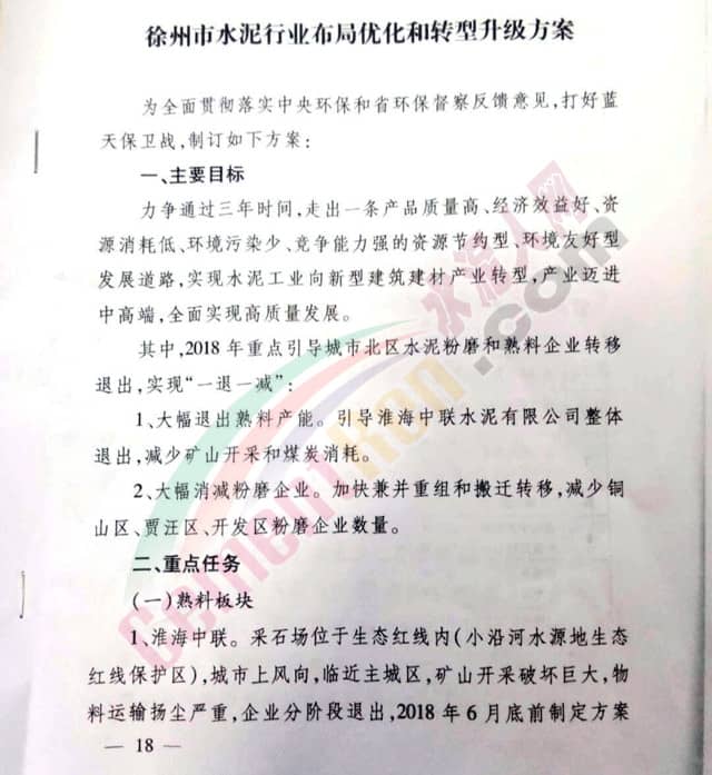 此事無獨有偶,今年五月份徐州大氣污染防治辦公室發(fā)布《徐州市水泥行業(yè)布局優(yōu)化和轉(zhuǎn)型升級方案》(以下簡稱“方案”)
