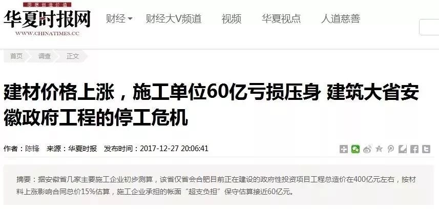 2017年12月27日,華夏時報一篇關(guān)于“建材價格上漲”的報道迅速傳遍“工程圈”,一時間議論紛紛,有同情有指責(zé),更多的是期待。