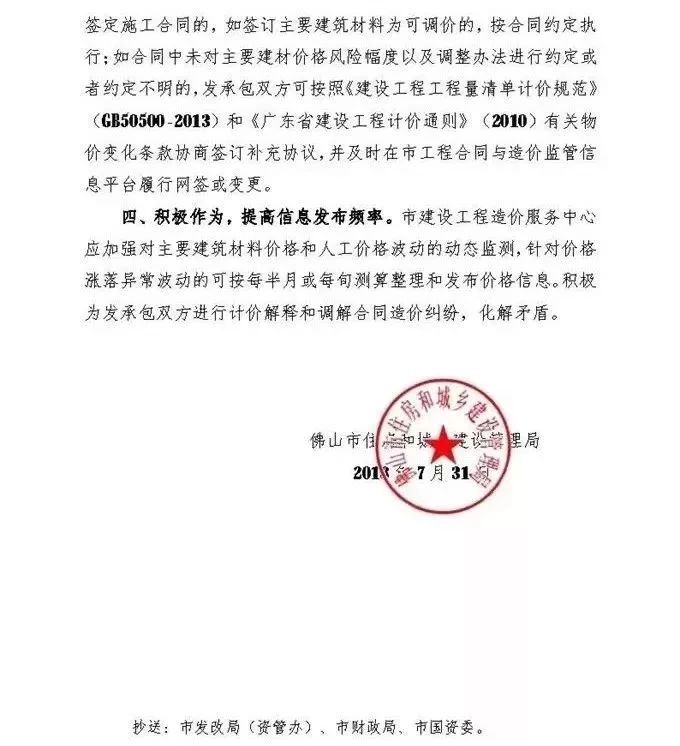 7月31日,佛山市住建管理局下發(fā)了《關(guān)于加強(qiáng)建筑材料價格風(fēng)險管控有關(guān)事項的通知》,提出: