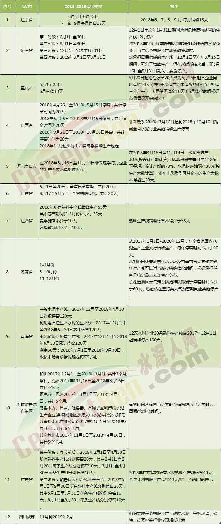 但是水泥行業(yè)卻出現(xiàn)了截然不同的現(xiàn)象---錯峰停產(chǎn)依賴癥,全國各地的錯峰停產(chǎn)轟轟烈烈,有種變本加厲的態(tài)勢,進(jìn)入9月霧霾或?qū)⒃俣葋硪u,10月1日開始北方的秋冬季錯峰停產(chǎn),再加上此前各區(qū)域發(fā)布的2018-2019年錯峰生產(chǎn)計(jì)劃,大半個中國的水泥廠將進(jìn)入“停產(chǎn)季”。