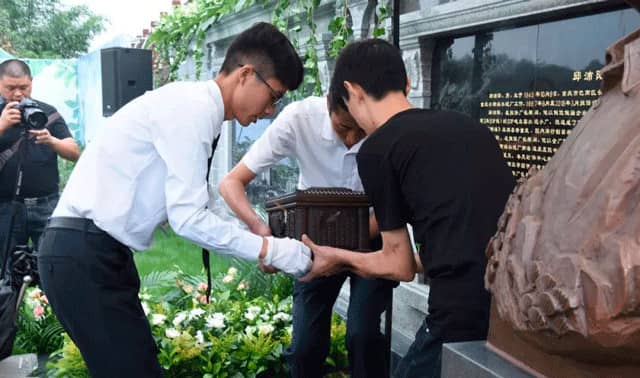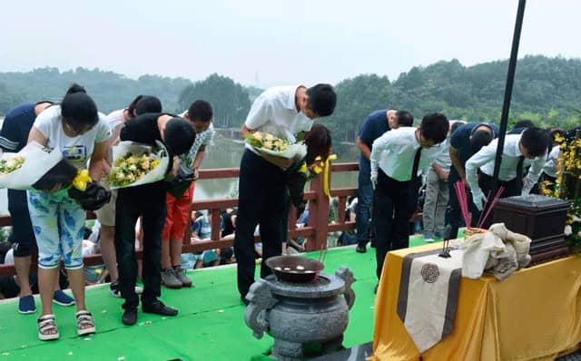 上午9時18分,下葬儀式正式進(jìn)行,儀式分為追思緬懷和下葬兩個環(huán)節(jié)。追思緬懷有老廠長的弟弟邱沛榮先生宣讀追思文、孝子孝女為塑像揭幕、擦凈塑像、凈靈盒、家人獻(xiàn)花、來賓獻(xiàn)花、在追思墻寫上心中思念的話語等環(huán)節(jié)。