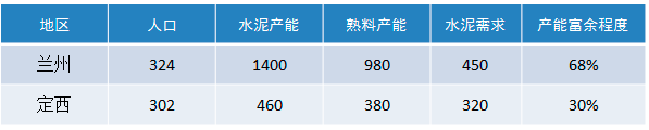定西市共有三家水泥企業(yè),熟料產(chǎn)能380萬噸、水泥產(chǎn)能460萬噸;水泥市場需求合計(jì)約320萬噸,產(chǎn)能富余程度30%。