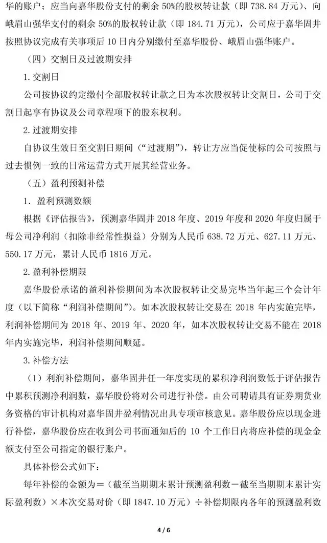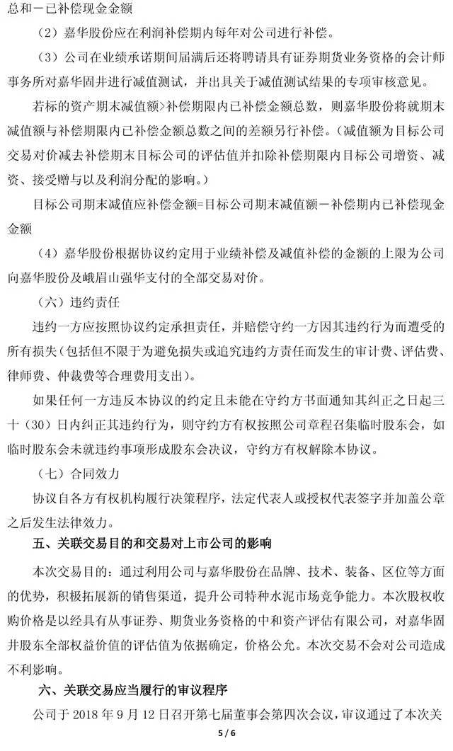 轉(zhuǎn)讓完成后,公司與嘉華股份分別持有嘉華固井50%股權(quán),公司合并嘉華固井財(cái)務(wù)報(bào)表。本次收購(gòu)將拓展新的銷售渠道,提升公司特種水泥市場(chǎng)競(jìng)爭(zhēng)能力。公告原文如下: