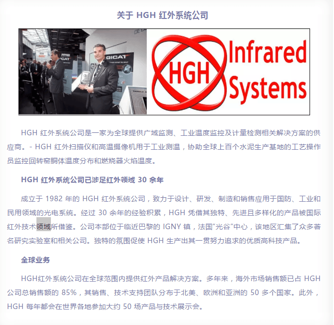 針對于這兩個案例中提到的窯的特殊性,法國HGH紅外系統(tǒng)股份提供了“個性定制”的測溫系統(tǒng)。