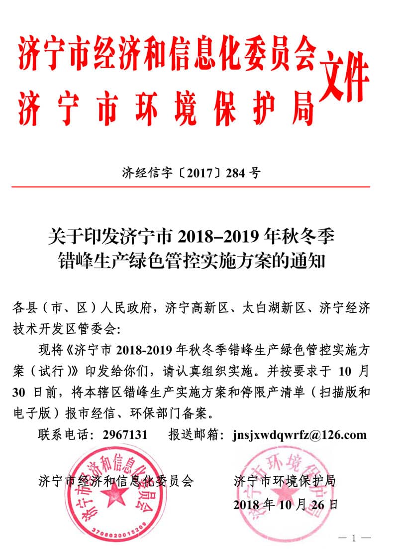 《濟寧市2018-2019 年秋冬季錯峰生產(chǎn)綠色管控實施方案(試行)》提出為貫徹落實《京津冀及周邊地區(qū)2018-2019 年秋冬季大氣污染綜合治理攻堅行動方案》和省、市秋冬季大氣污染防治方案,按照濟寧市委、市政府要求,深入推進2018-2019 年采暖季工業(yè)企業(yè)錯峰生產(chǎn),持續(xù)改善區(qū)域空氣質(zhì)量,特制定本方案。