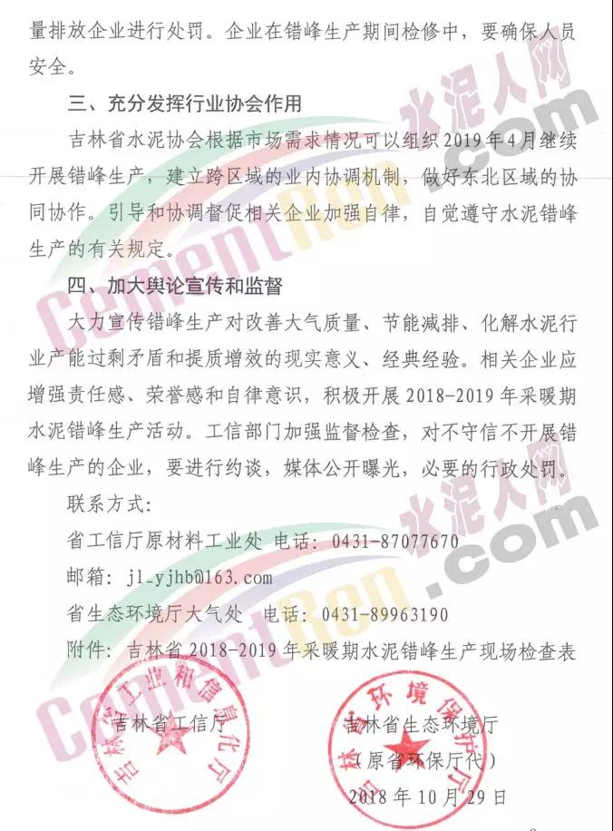 據(jù)水泥人網(wǎng)了解,近日吉林省工信廳、生態(tài)環(huán)境廳聯(lián)合發(fā)布《關(guān)于吉林省2018-2019年采暖期實(shí)行水泥錯(cuò)峰生產(chǎn)的通知》(以下簡(jiǎn)稱“通知”),通知明確要求,省內(nèi)所有水泥熟料生產(chǎn)企業(yè)(含利用電石渣生產(chǎn)熟料的企業(yè))于2018年11月1日至2019年3月31日全面實(shí)行錯(cuò)峰生產(chǎn),其中承擔(dān)居民供暖、協(xié)同處置城市生活垃及有毒有害廢棄物等任務(wù)的生產(chǎn)線經(jīng)批準(zhǔn)后可以不進(jìn)行錯(cuò)峰生產(chǎn),但應(yīng)適當(dāng)降低水泥生產(chǎn)負(fù)荷。屬地市(州)工信、環(huán)保部門要加強(qiáng)對(duì)不錯(cuò)峰生產(chǎn)企業(yè)落實(shí)承擔(dān)任務(wù)情況監(jiān)督核查,并進(jìn)行備案。2019年4月1日后,省水泥協(xié)會(huì)組織企業(yè)根據(jù)實(shí)際情況,可繼續(xù)開展錯(cuò)峰生產(chǎn),延續(xù)到4月30日。