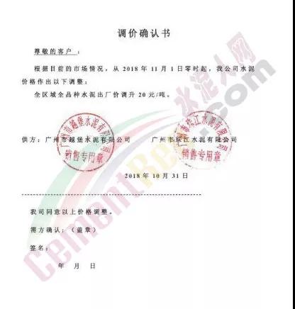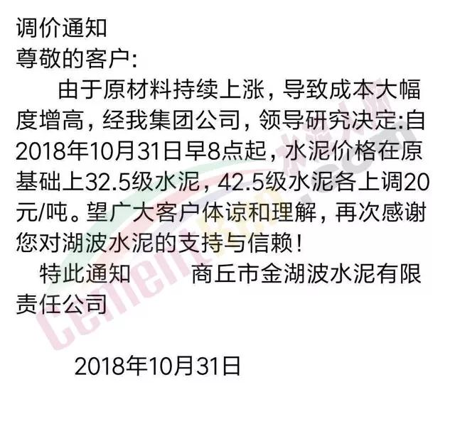同期發(fā)布漲價(jià)通知的還有河南區(qū)域的金湖波水泥。