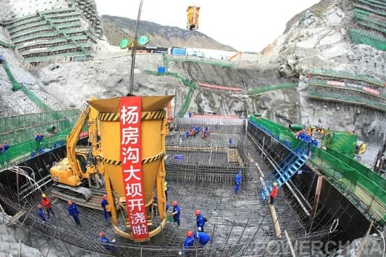 10月30日,我國首個采用設(shè)計施工總承包模式進(jìn)行建設(shè)的百萬千瓦級大型水電站項目——楊房溝大壩首倉混凝土正式澆筑。隨著纜機(jī)將第一罐混凝土下料至10號壩段倉面,大壩工程施工由基礎(chǔ)開挖全面轉(zhuǎn)入主體混凝土澆筑。