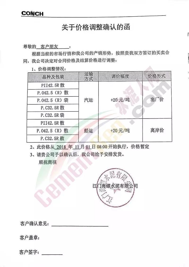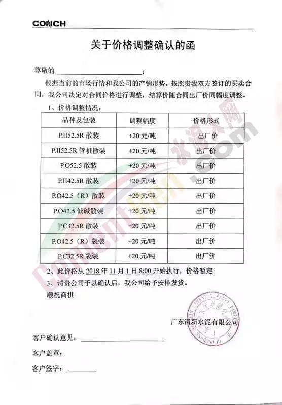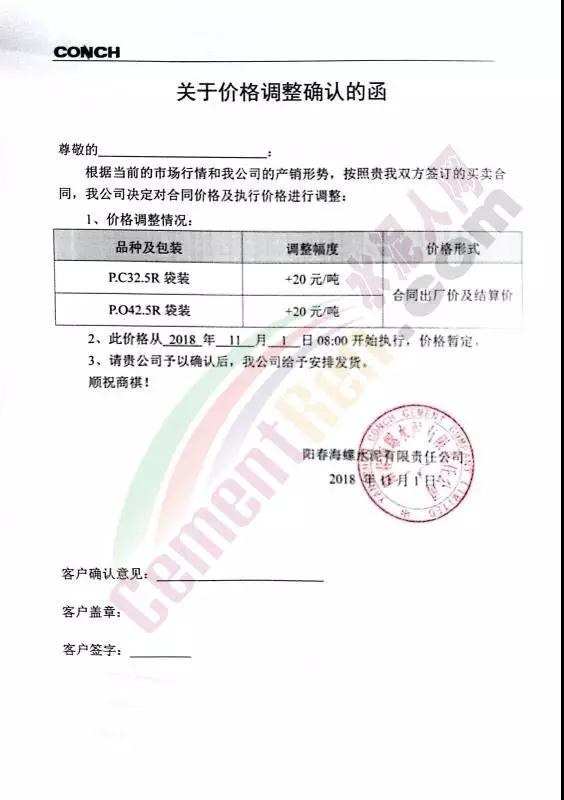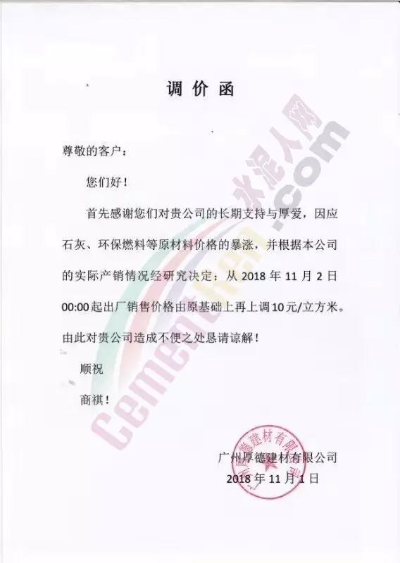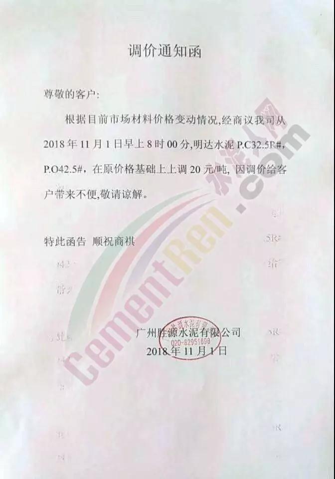華南區(qū)域廣東、廣西區(qū)域水泥企業(yè)漲價通知函