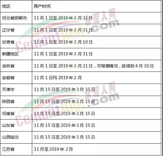 11月1日起各地錯(cuò)峰停產(chǎn)時(shí)間表