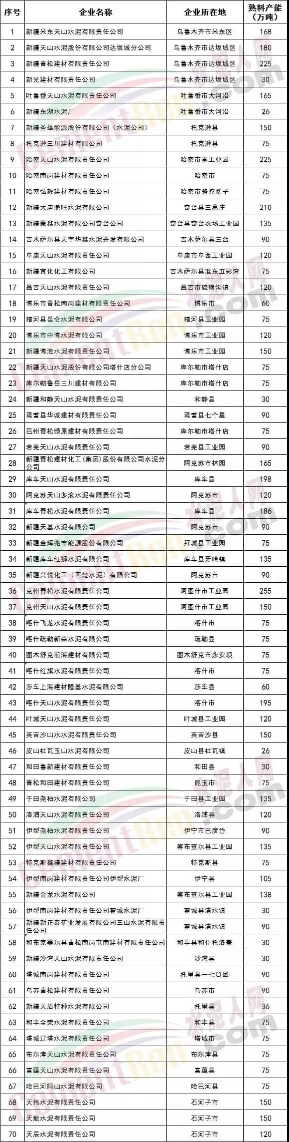 新疆維吾爾自治區(qū)部分水泥企業(yè)名單