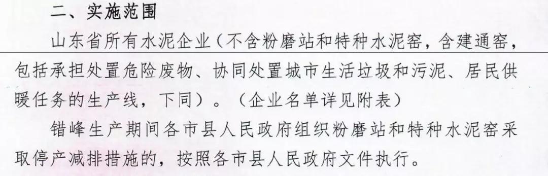 山東省的錯(cuò)峰生產(chǎn)方案針對于前兩年錯(cuò)峰生產(chǎn)中的“特權(quán)政策”做了專門的解讀,方案中明確水泥窯協(xié)同處置固廢、危廢及居民供暖等在采暖季結(jié)束后均要補(bǔ)齊相應(yīng)停窯時(shí)間。