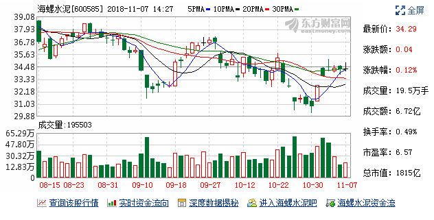 海螺水泥融資融券信息顯示,2018年11月6日融資凈償還1871.11萬(wàn)元,融資余額10.13億元,較前一交易日下降1.81%。