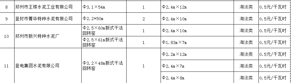 用電不加價(jià)水泥企業(yè):鄭州煤炭工業(yè)集團(tuán)龍力水泥有限責(zé)任公司、天瑞集團(tuán)鄭州水泥有限公司、中國長(zhǎng)城鋁業(yè)有限公司水泥廠、登封中聯(lián)登電水泥有限公司、天瑞新登鄭州水泥有限公司、登封市嵩基水泥有限公司、登封市宏昌水泥有限公司、登電集團(tuán)水泥有限公司、鄭州順寶水泥股份有限公司、鄭州永華水泥有限公司、新鄭市恒發(fā)水泥廠、河南雙龍建材有限公司。