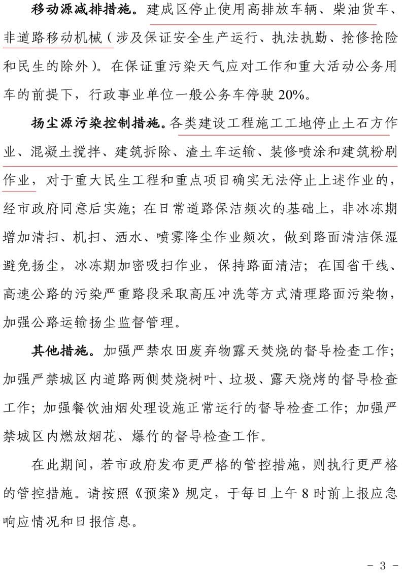 揚塵源污染控制措施。各類建設工程施工工地停止土石方作業(yè)、混凝土攪拌、建筑拆除、渣土車運輸、裝修噴涂和建筑粉刷作業(yè),對于重大民生工程和重點項目確實無法停止上述作業(yè)的,經(jīng)市政府同意后實施;