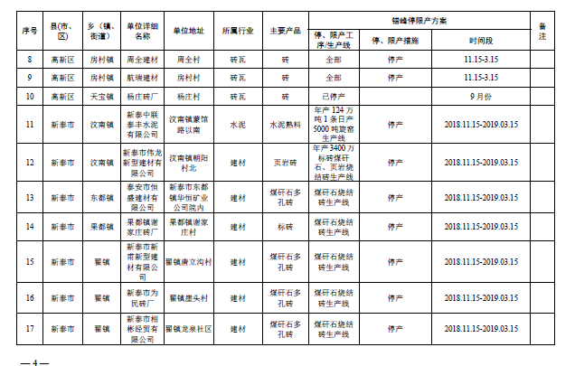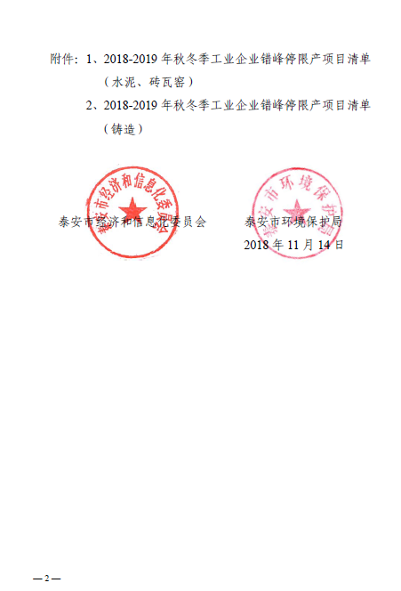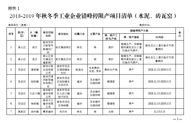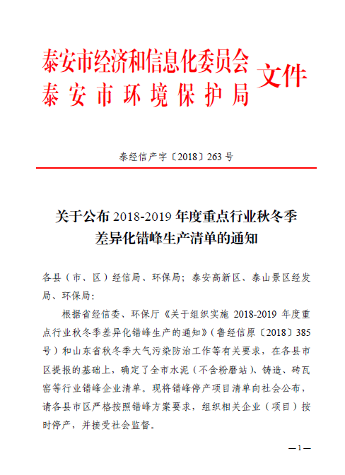 近日,泰安市經(jīng)濟和信息化委員會和泰安市環(huán)境保護局聯(lián)合發(fā)布《關(guān)于公布2018-2019年度重點行業(yè)秋冬季差異化錯峰生產(chǎn)清單》的通知,據(jù)悉,在各縣市區(qū)提報的基礎(chǔ)上,確定了全市水泥(不含粉磨站)、鑄造、磚瓦窯等行業(yè)錯峰企業(yè)清單。錯峰停產(chǎn)項目清單將向社會公布,要求各縣市區(qū)嚴格按照錯峰方案要求,組織相關(guān)企業(yè)(項目)按時停產(chǎn),同時接受社會監(jiān)督。