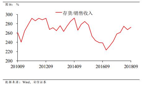 表征“基建+房地產(chǎn)”內(nèi)需的水泥的各項(xiàng)指標(biāo)在十月出現(xiàn)顯著反彈,原因可能是基建的大幅反彈或者是限產(chǎn)季到來(lái)前的搶產(chǎn)。但水泥今年以來(lái)持續(xù)的強(qiáng)勢(shì)值得關(guān)注。我們認(rèn)為,一種可能是水泥行業(yè)的供改導(dǎo)致統(tǒng)計(jì)上的數(shù)字高估;另一種可能是2018年房地產(chǎn)開(kāi)發(fā)模式的變化導(dǎo)致了新開(kāi)工的高企支撐了水泥及鋼鐵的高漲。房企拿地高峰或已過(guò)去,未來(lái)可能預(yù)見(jiàn)的是房屋新開(kāi)工增速下降以及鋼鐵水泥需求的下降,這與限產(chǎn)行業(yè)供給上升的疊加效果將可能導(dǎo)致鋼鐵水泥價(jià)格的大幅下滑。