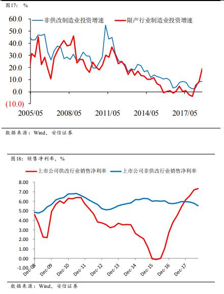 目前的關(guān)鍵問(wèn)題是,這個(gè)回升將持續(xù)到什么時(shí)候。我們認(rèn)為,這可能要等到供改行業(yè)的銷(xiāo)售凈利率回到相對(duì)正常的水平。目前來(lái)看,這個(gè)過(guò)程還將延續(xù)一段時(shí)間。因此,即使明年的非供改行業(yè)的制造業(yè)投資出現(xiàn)下降,供改行業(yè)的制造業(yè)投資依然保持高水平,形成對(duì)沖,導(dǎo)致制造業(yè)投資的下滑幅度可能并不會(huì)太大。