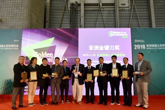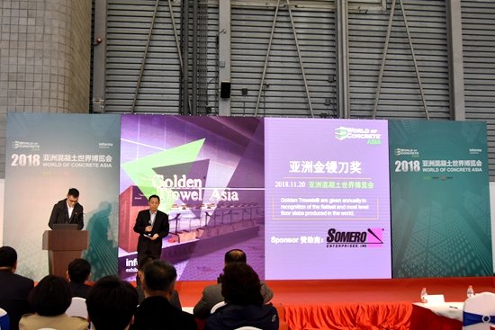 而在展會同期的11月20日,在世界范圍內(nèi)擁有權(quán)威性的混泥土地面工程獎項——“金鏝刀獎”也在亞洲混凝土世界博覽會上隆重公布。金鏝刀獎 Golden Trowels 每年由美國費斯公司頒發(fā),以此來表彰全球范圍內(nèi)高平整度和高水平度混凝土地面項目的施工商。金鏝刀獎項設(shè)立于1989年,至今已有29年的歷史。在費斯公司和英富曼會展的共同協(xié)作下,亞洲金鏝刀獎?wù)竭M入中國,該獎項是特別為亞洲地區(qū)施工商設(shè)立的。今年有2家中國施工商企業(yè)獲得亞洲金鏝刀獎;京東亞洲一號天津東麗物流園項目,憑借優(yōu)質(zhì)的地面工程品質(zhì)斬獲了素有地坪行業(yè)“奧斯卡”之稱的國際級最高獎項——“亞洲金鏝刀獎”,實現(xiàn)了中國建設(shè)項目在此類國際獎項上的零突破。除了在本次展會上收獲這份榮譽之外,獲獎?wù)哌€將受邀參加于2019年1月22-25日期間在美國拉斯維加斯會展中心舉辦的美國混凝土世界博覽會。