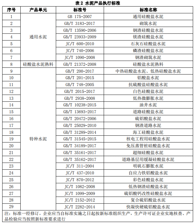 按企業(yè)標(biāo)準(zhǔn)、地方標(biāo)準(zhǔn)等生產(chǎn)的水泥產(chǎn)品,屬于本細(xì)則列出的相關(guān)國(guó)家標(biāo)準(zhǔn)和行業(yè)標(biāo)準(zhǔn)的范疇或適用范圍的,按相應(yīng)的國(guó)家標(biāo)準(zhǔn)或行業(yè)標(biāo)準(zhǔn)取證。