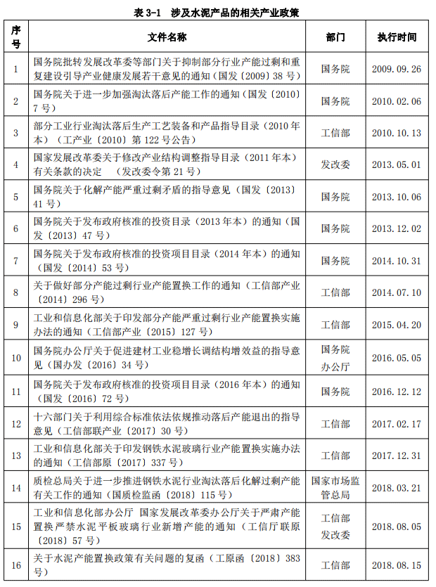 涉及水泥產(chǎn)品的相關(guān)產(chǎn)業(yè)政策見(jiàn)表3-1。