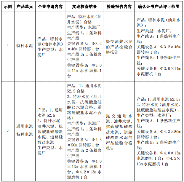 第十六條 水泥產(chǎn)品生產(chǎn)許可范圍的判定原則及示例: