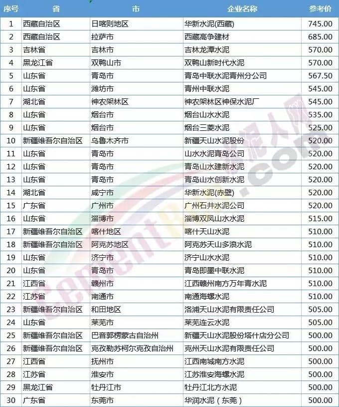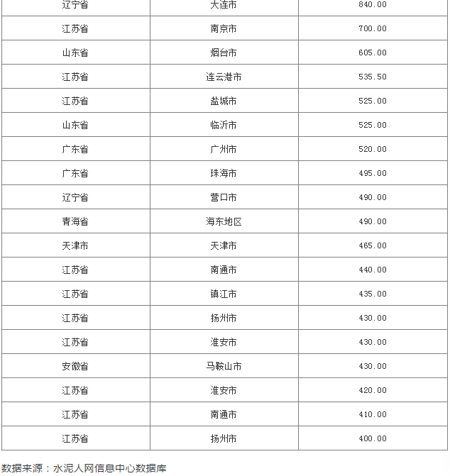其次是山東,山東省PO42.5水泥價(jià)格幾乎是全境過500元/噸,直指600元/噸,氣勢(shì)上不輸江浙區(qū)域。據(jù)了解,近期山東省部分主導(dǎo)企業(yè)門庭若市,驚現(xiàn)日夜排隊(duì)現(xiàn)象。
