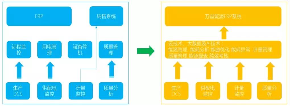 圖1 傳統(tǒng)管理系統(tǒng)與萬益管理系統(tǒng)框架對(duì)比