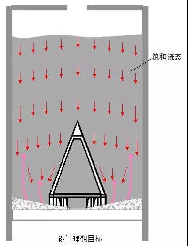 1. 由于全行業(yè)對(duì)粉體動(dòng)力學(xué)理論缺乏清晰完整的研究掌握,為了避免全空庫(kù)的中心漏斗流模式,一般在庫(kù)底都采用大型減壓錐設(shè)計(jì),以前期理論上通過改變庫(kù)底羅茨風(fēng)機(jī)多級(jí)環(huán)形斜槽陣的氣動(dòng)流化作用外擴(kuò)到庫(kù)底部外壁,進(jìn)而實(shí)現(xiàn)環(huán)庫(kù)的活化卸放,如圖2所示。