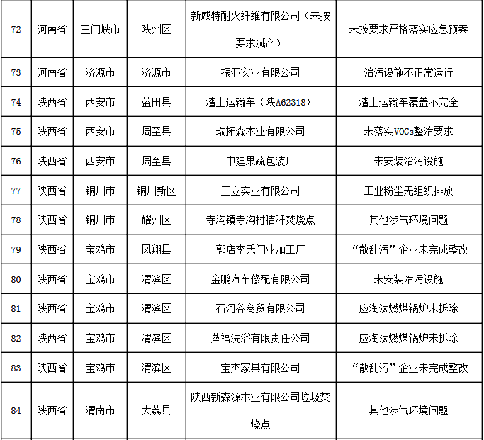 強化監(jiān)督發(fā)現涉氣環(huán)境問題匯總表