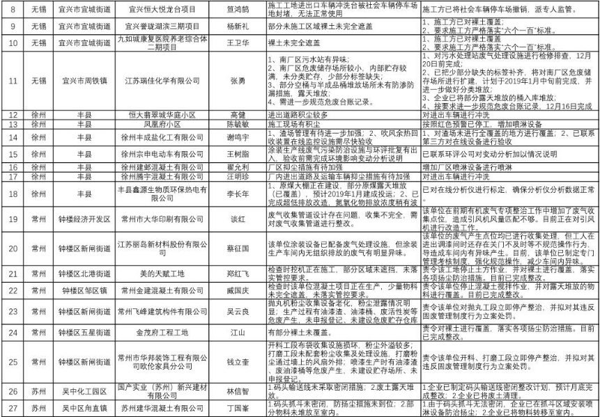 根據(jù)《關(guān)于開(kāi)展秋冬季期間環(huán)境執(zhí)法發(fā)現(xiàn)問(wèn)題公開(kāi)發(fā)布工作的通知》(蘇環(huán)辦〔2018〕461號(hào))要求,現(xiàn)將12月份第二周我省秋冬季大氣污染防治交叉互查情況通報(bào)如下: