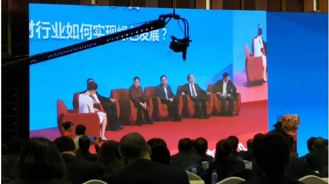 北京大學國家競爭力研究院院長郭云濤、中國建材集團有限公司總工程師、中國建筑材料科學研總院院長姚燕、華新水泥股份有限公司總裁長李葉青、上海建材(集團)有限公司總裁趙健、中國水泥協(xié)會常務副會長孔祥忠針對“建材行業(yè)如何實現(xiàn)綠色發(fā)展”展開討論。