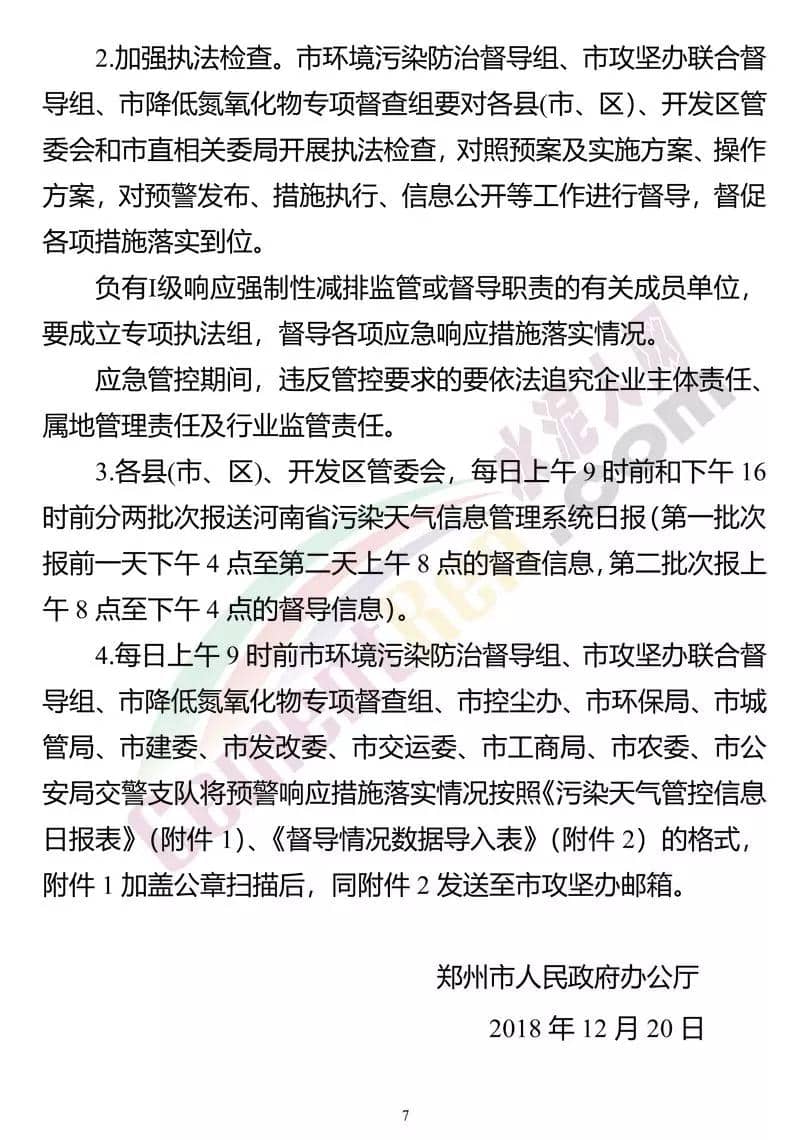 按照《鄭州市人民政府關(guān)于印發(fā)鄭州市重污染天氣應(yīng)急預(yù)案(2018年修訂)的通知》(鄭政文〔2018〕177號)規(guī)定,經(jīng)鄭州市政府研究決定,12月20日22時發(fā)布重污染天氣紅色預(yù)警,并立即啟動Ⅰ級應(yīng)急響應(yīng)。據(jù)悉,這是今年秋冬鄭州市啟動的第一個紅色預(yù)警。通知提出工業(yè)污染源、移動污染源以及其他污染源減排相關(guān)措施方面: