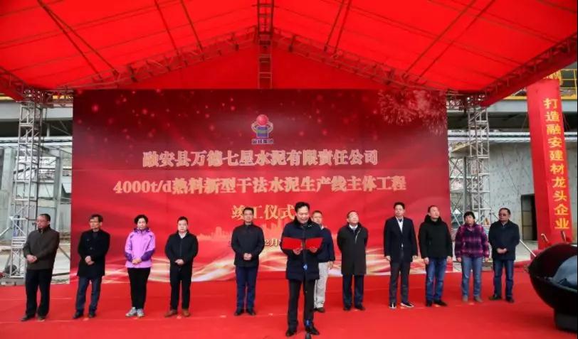 12月28日,融安縣萬德七星水泥有限責任公司舉行4000t/d熟料新型干法水泥生產(chǎn)線主體工程竣工儀式現(xiàn)場。