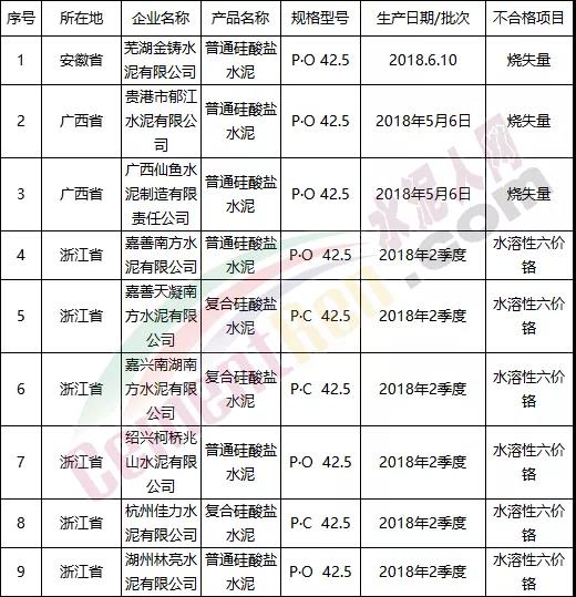 2018年水泥強(qiáng)度不合格企業(yè)名單