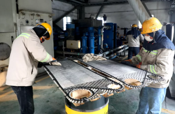 高鎖利是制成車間一名普通的潤滑工,卻有著高超的“御油之術(shù)”,從日常潤滑管理、降低磨輥溫度再到磨機(jī)油站改造,他都是行家里手,從不懼怕困難,解決著一個(gè)又一個(gè)難題。此次檢修,他考慮到板式冷卻器長時(shí)間運(yùn)作,容易造成堵塞,制冷效果必打折扣的問題。于是,他緊抓檢修時(shí)間,組織檢修人員分工協(xié)作,近60多片的冷卻板經(jīng)過鹽酸、汽油的洗禮后,均已全部煥然一新,時(shí)刻準(zhǔn)備著再戰(zhàn)“沙場(chǎng)”。作為設(shè)備潤滑工,身上難免沾有油污,他總是淡然地說道:“我臟了不怕,只要設(shè)備干凈了,能正常運(yùn)轉(zhuǎn)就行,值了!”