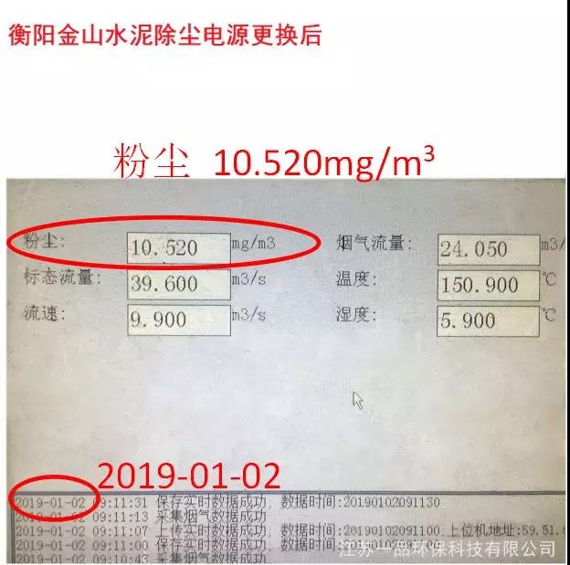 眾多客戶(hù)的信賴(lài),一項(xiàng)又一項(xiàng)的超低排放改造成功案例,彰顯江蘇一品除塵電源技術(shù)的領(lǐng)先性及豐富的電除塵器改造經(jīng)驗(yàn),湖南衡陽(yáng)金山水泥2500t/d生產(chǎn)線窯頭通過(guò)將除塵電源更換,經(jīng)改造前后檢測(cè)對(duì)比,減排效果十分顯著!