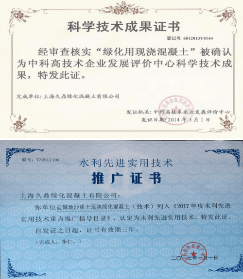改革開放40年來,技術(shù)創(chuàng)新是企業(yè)不斷進(jìn)步的原動力。李仁從2003開始對綠化混凝土的結(jié)構(gòu)原理等進(jìn)行不斷地深入摸索研究,解決了綠化混凝土的抗壓強(qiáng)度、孔隙率、抗水土流失、除堿、沉漿等一系列都能影響到工程的綠化效果及工程的牢固性、穩(wěn)定性等相關(guān)方面的技術(shù)難題,到2010 年正式成立上海久鼎綠化混凝土有限公司,如今公司已擁有“綠化用混凝土塊的生產(chǎn)方法”“底柱表孔型現(xiàn)澆綠化混凝土”等30多項(xiàng)具有獨(dú)立知識產(chǎn)權(quán)的專利, 其中7項(xiàng)發(fā)明專利及20多項(xiàng)實(shí)用新型專利,現(xiàn)澆綠化用混凝土制備方法和設(shè)備已申請國際專利。