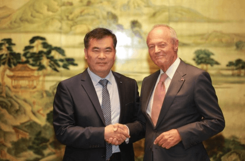李仁董事長和匈牙利前總理邁杰希•彼得親切握手留念