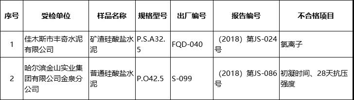 通過檢驗(yàn),佳木斯市豐奇水泥有限公司生產(chǎn)的礦渣硅酸鹽水泥的氯離子和哈爾濱金山實(shí)業(yè)集團(tuán)有限公司金泉分公司生產(chǎn)的普通硅酸鹽水泥的初凝時(shí)間、28天抗壓強(qiáng)度等指標(biāo),分別超出國家標(biāo)準(zhǔn)GB 175-2007《通用硅酸鹽水泥》中技術(shù)要求,判定為不合格(上述不合格產(chǎn)品具體情況詳見質(zhì)檢報(bào)告)。